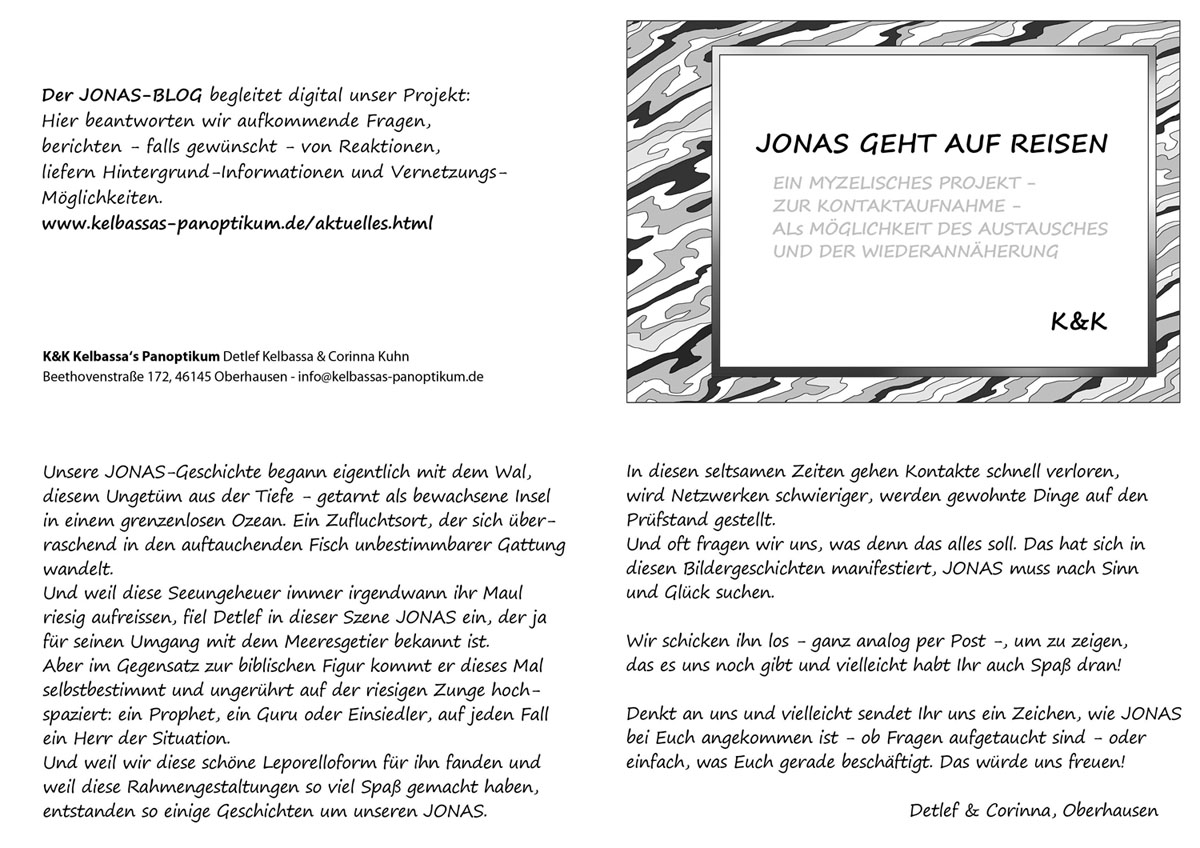 'JONAS geht auf Reisen': eine Serie von Künstlerheften, deren gezeichneter Protagonist inspiriert ist von der Figur der alttestamentlichen Geschichte von Jona und